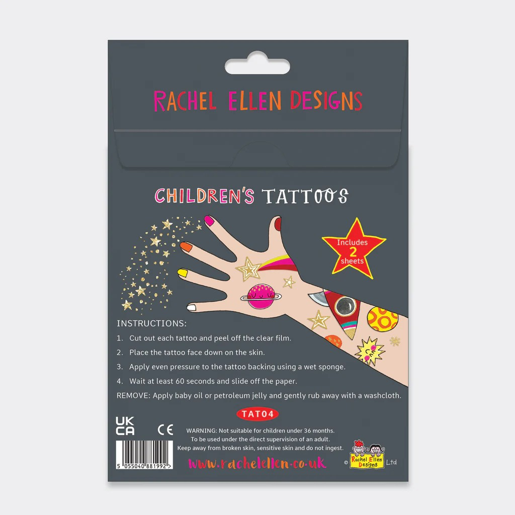 *宇宙やロケットデザインのタトゥーシール *シート2枚入り *対象年齢3歳以上