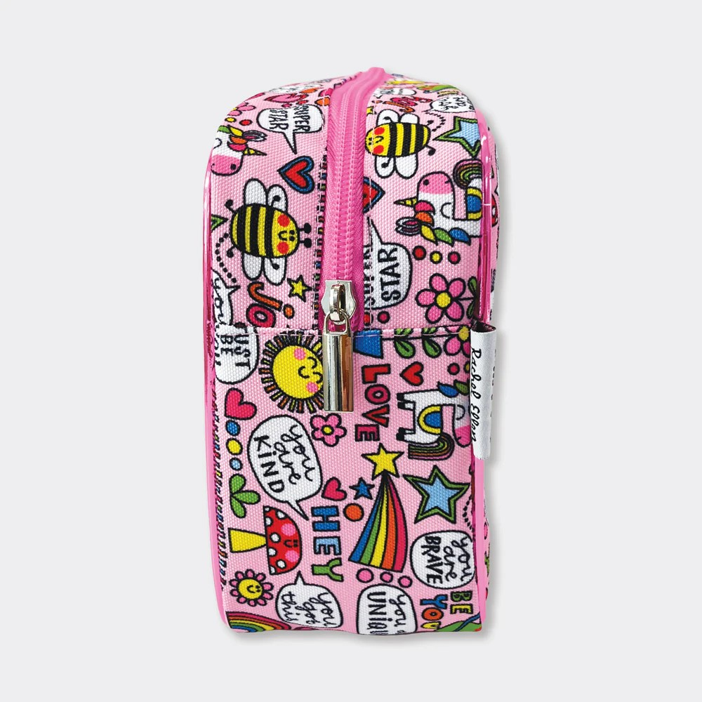 *旅行用や、お子様の荷物をまとめたり、おむつポーチとして使うのに便利 *ユニコーンやハチ、虹が描かれた気分がHAPPYになるデザイン *メタリックエッジが心をくすぐるポイント