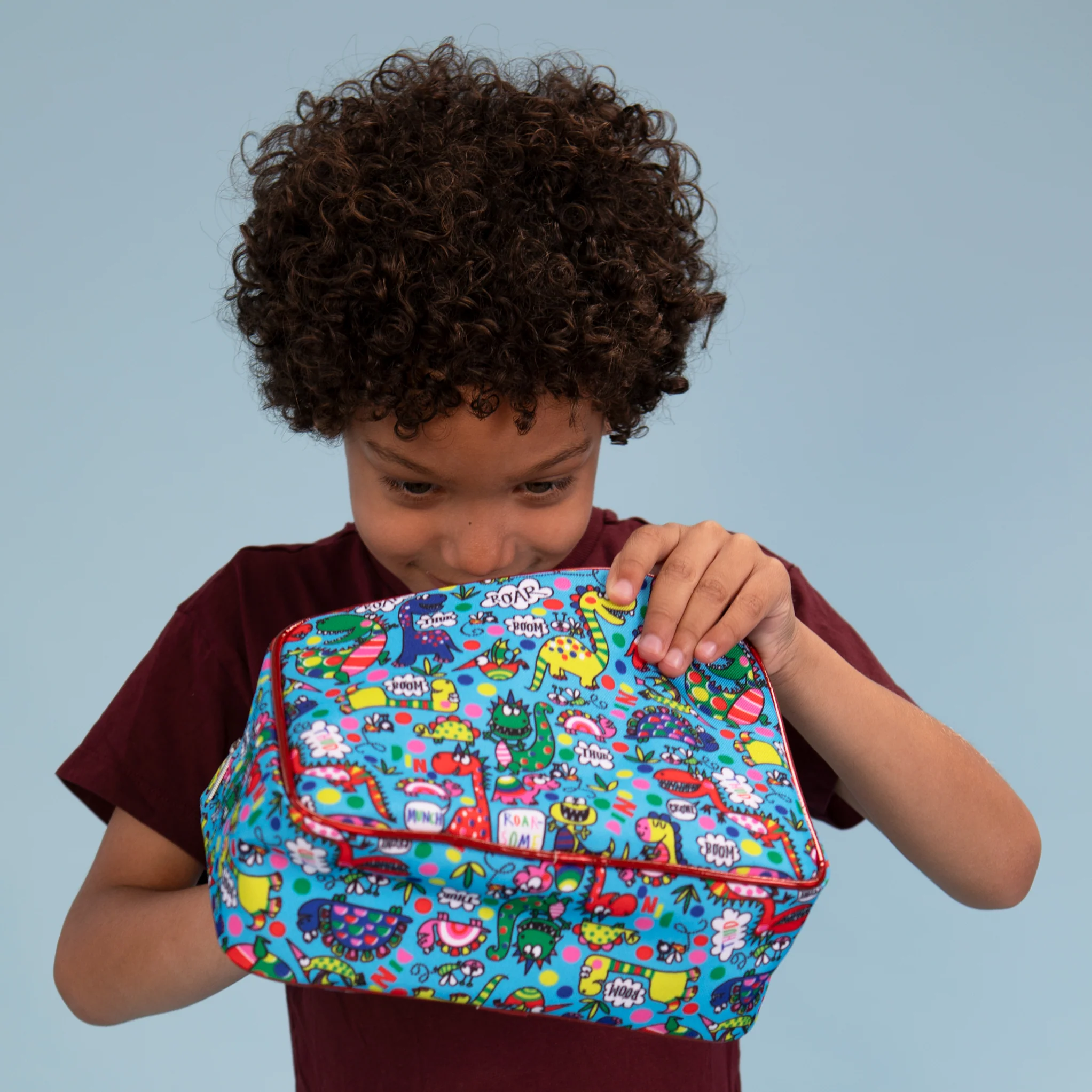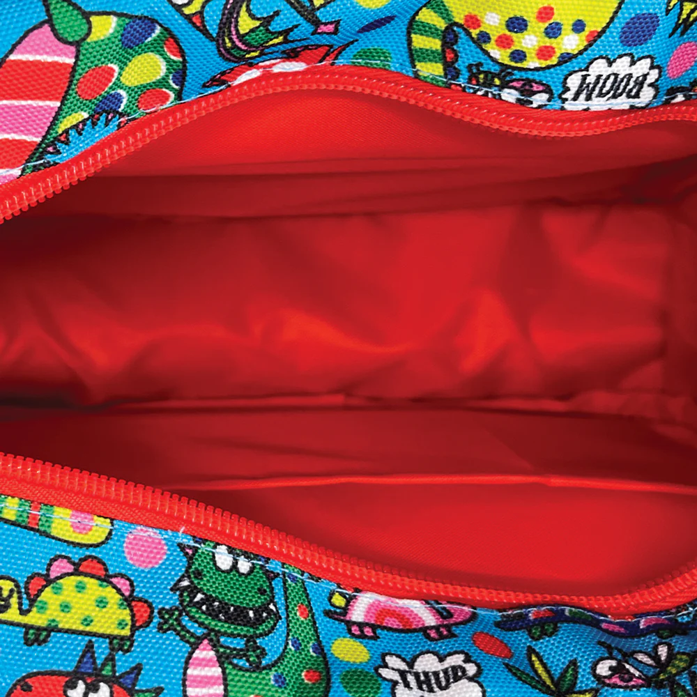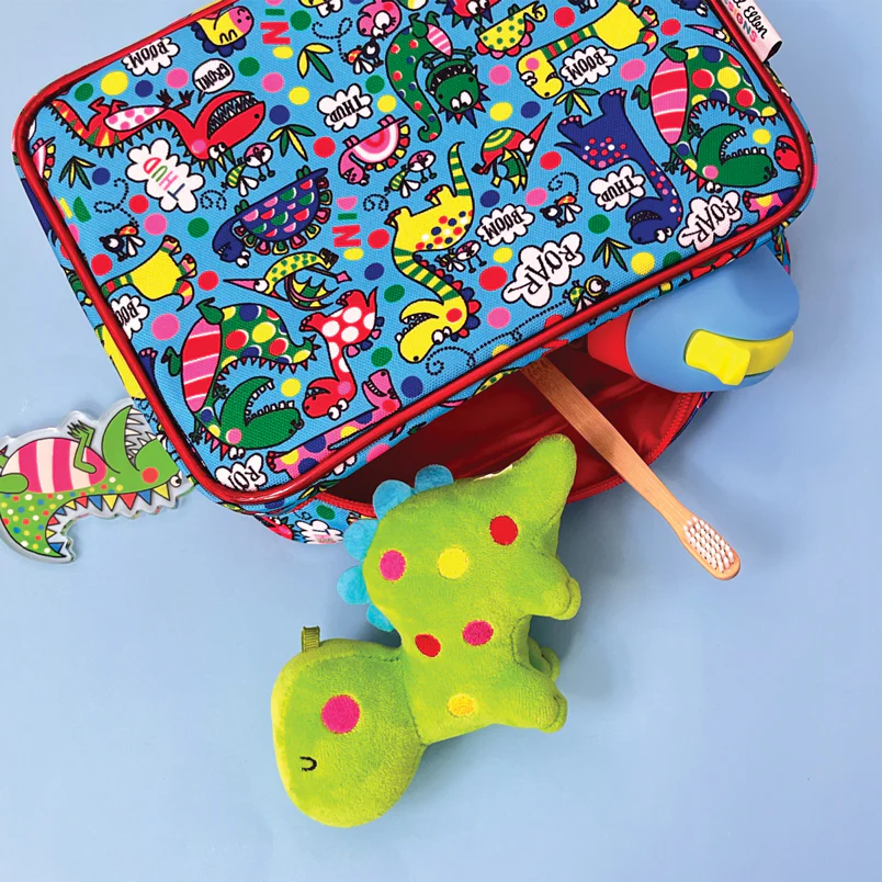 *旅行用や、お子様の荷物をまとめたり、おむつポーチとして使うのに便利 *色んな恐竜が集まったデザイン *メタリックエッジが心をくすぐるポイント