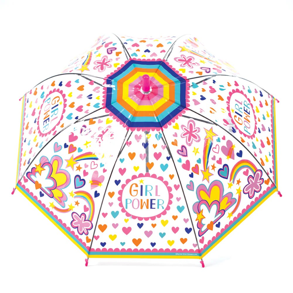 *RACHELの中でも人気のGirl powerをテーマにしたデザイン *イギリスらしいドーム型の傘 *自動開閉式で使いやすい *耐久性のある透明なPOE素材